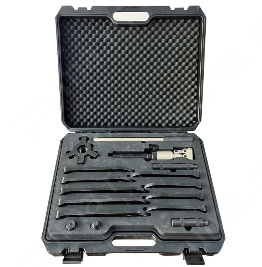 Комплект съемника TMHP 10E оснащен гидравлическим шпинделем для легкого демонтажа подшипников до 100 кН. Универсальный комплект съемника включает три различных размера рычагов и может быть собран в съемник с двумя или тремя рычагами в зависимости от пространства и потребностей применения.